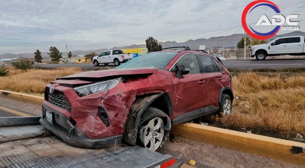 Juárez, Chih.-Una camioneta Toyota RAV4 volcó esta mañana a la altura del kilómetro 23 de la carretera Juárez–Chihuahua, luego de que la conductora perdiera el control de la unidad. El vehículo salió del camino y terminó recostado sobre el camellón central.