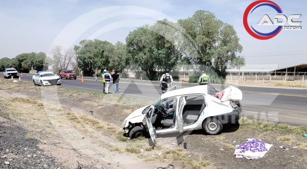 Delicias, Chih.-Autoridades ampliaron la información sobre la volcadura registrada en la Carretera Federal 45, a la altura del kilómetro 130+500, frente al Rancho Zaragoza, en el tramo que conecta de Saucillo hacia Delicias, donde un automóvil terminó volcado tras perder el control y cruzar hacia el carril contrario.