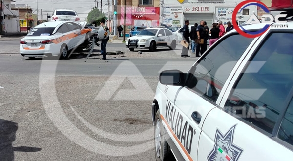 Delicias, Chih.-Un percance vial entre dos vehículos se registró en el cruce de la avenida Fernando Baeza y la Avenida Octava Sur, donde se vieron involucrados un taxi y un automóvil particular. El incidente generó afectaciones momentáneas en la circulación de la zona.