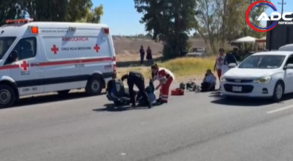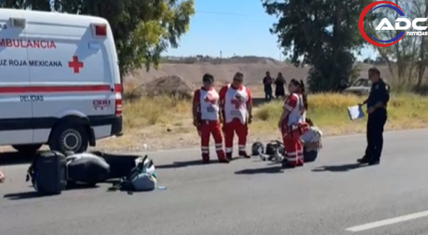 Cd. Delicias, Chih.- Una mujer resultó con lesiones leves luego de derrapar y caer de su motocicleta mientras circulaba sobre la carretera Delicias–Meoqui.