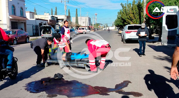 Cd. Delicias, Chih.- Una probable fractura en una de sus extremidades inferiores, fue como terminó un repartidor luego de participar en el choque alcance registrado en la calle Mina Barroterán del Fovissste II, la tarde de este sábado, de acuerdo a una entrevista con el oficial de Vialidad César Jiménez.