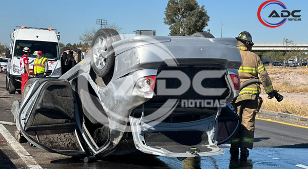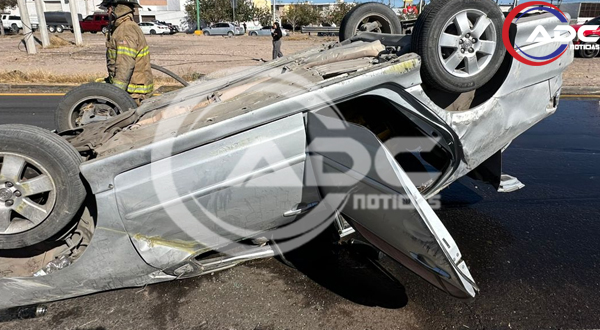 Cd. Delicias, Chih.- Una fuerte volcadura registrada la tarde de este lunes frente al Infonavit Cielo Vista movilizó a corporaciones de auxilio, luego de que dos hombres resultaran con lesiones leves tras quedar su vehículo volcado sobre el pavimento.