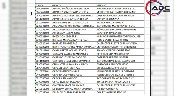 Esta lista es posible encontrarla en la página Facebook del organismo, JMAS Delicias, donde se detallan: nombre del usuario, número de cuenta y el obsequio que le corresponde.
