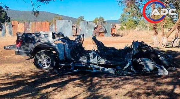 Durante los recorridos posteriores al ataque, las autoridades localizaron cuatro patrullas municipales con impactos de arma de fuego en el tramo Madera–El Largo Maderal, frente al panteón municipal.