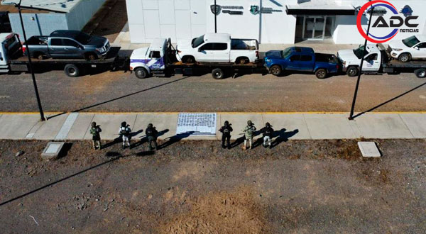Madera.- La Policía del Estado aseguró siete vehículos con reporte de robo en el municipio de Madera, como parte de un operativo coordinado entre la Secretaría de Seguridad Pública Estatal, la Guardia Nacional y la Secretaría de la Defensa Nacional.