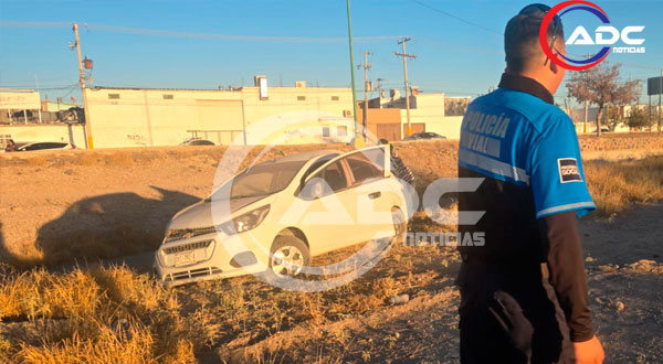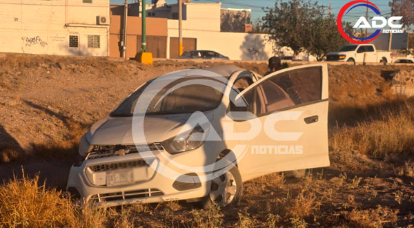 El accidente involucró un automóvil Chevrolet Beat de color blanco, con placas del estado de Chihuahua, el cual salió de la cinta asfáltica y terminó volcado, quedando con daños de consideración.