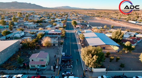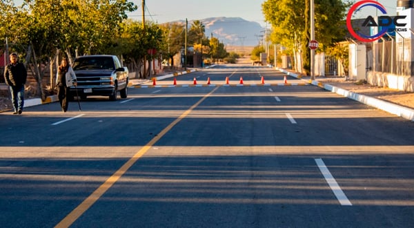 Meoqui, Chih.- La alcaldesa Miriam Soto acudió a Estación Consuelo para hacer entrega oficial de la pavimentación de la Calle Álamo, así como el Muro de identidad de la Comunidad, obras realizadas gracias al trabajo coordinado entre el Gobierno Municipal y vecinos, teniendo una inversión cercana a los 1.8 MDP.