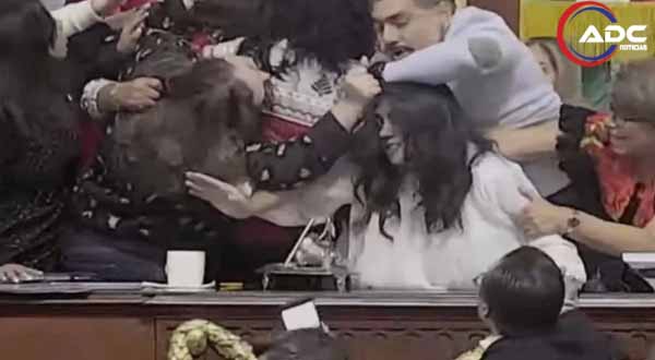 Esto provocó un enfrentamiento a golpes y jalones de cabello entre diputadas que subieron al estrado para enfrentarse y demostrar su inconformidad.