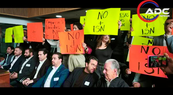 Previo al arranque de la sesión, representantes de diversas cámaras empresariales, como el Consejo Coordinador Empresarial (CCE), Coparmex y Canacintra, ingresaron al recinto legislativo para manifestar su rechazo al aumento del ISN del 3 al 4 por ciento. Los inconformes se colocaron detrás del Salón de Sesiones portando pancartas con consignas en defensa del empleo y en contra del alza al impuesto.