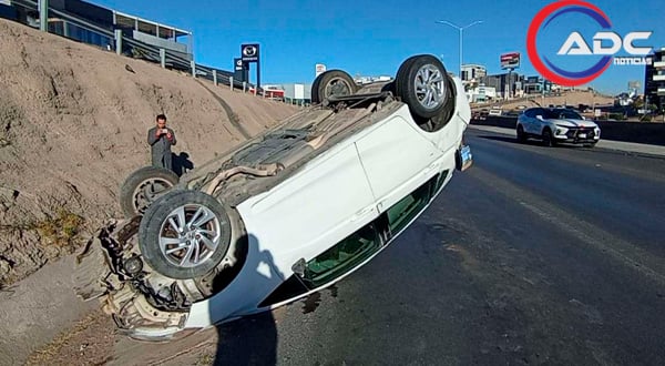 Chihuahua, Chih.-Una conductora que circulaba a bordo de un vehículo Honda Fit volcó mientras transitaba por el Periférico de la Juventud, en sentido de norte a sur, a la altura de la calle Hacienda Los Morales.
