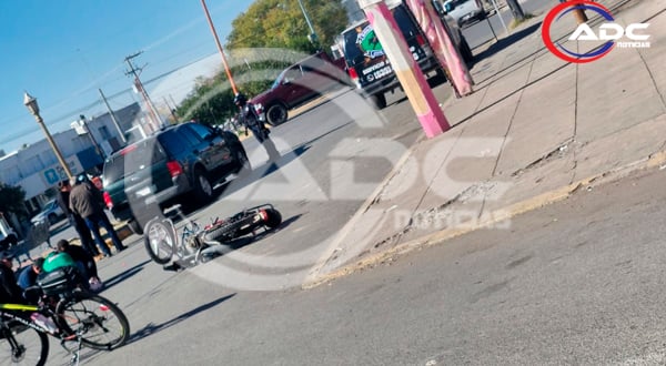 Cd. Delicias, Chih.- Un motociclista resultó con lesiones de consideración luego de verse involucrado en un accidente vial registrado en la avenida Agricultura Norte y calle Segunda, a un costado del restaurante Bandidos.
