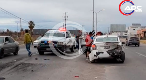 Cd. Delicias, Chih.- Un choque por alcance se registró en el cruce de la avenida Río San Pedro Sur y avenida 16, frente a una estación de servicio, donde dos vehículos particulares resultaron involucrados.