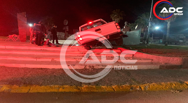 En las imágenes se observa cómo una camioneta tipo pick-up que circulaba de norte a sur pierde el control presuntamente por exceso de velocidad, impacta contra la banqueta y posteriormente se sube a la glorieta, causando severos daños a la estructura de concreto del monumento dedicado a Manuel Gómez Morín.