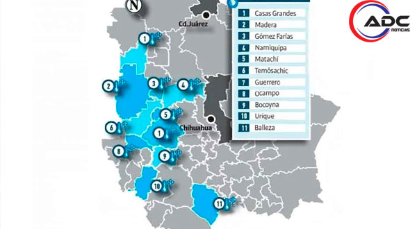 El coordinador estatal, Luis Corral Torresdey, explicó que los municipios donde se registró caída de nieve fueron Casas Grandes, Guerrero, Madera, Ocampo, Temósachic, Gómez Farías, Namiquipa, Matachí, Bocoyna, Urique y Balleza, con acumulaciones de ligeras a moderadas, especialmente en zonas altas y tramos carreteros de la sierra.