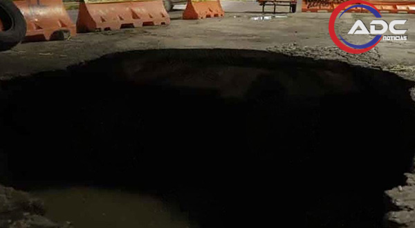 Ante el riesgo para automovilistas, los trabajadores procedieron a colocar barreras anaranjadas y cordón amarillo para impedir el paso vehicular y evitar accidentes, mientras continúan las evaluaciones técnicas en el área.