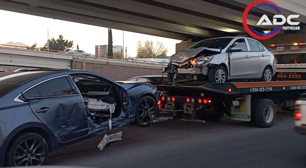Chihuahua, Chih.-Un accidente vial registrado en la intersección de la avenida Pacheco y el Canal Teófilo Borunda dejó como saldo a un acompañante lesionado y atrapado dentro de un vehículo.