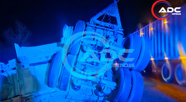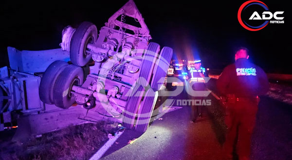 Saucillo, Chih.-Un semirremolque que transportaba cerca de 25 mil litros de leche volcó la noche de este miércoles sobre la carretera federal 45, aproximadamente en el kilómetro 125, en el tramo entre Saucillo y Delicias.