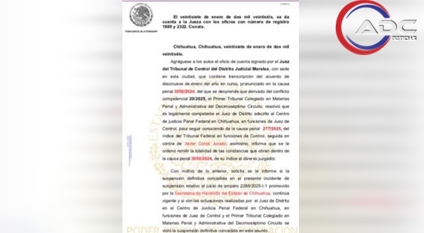 De acuerdo con el acuerdo fechado el 27 de enero de 2026, el Primer Tribunal Colegiado en Materias Penal y Administrativa del Décimo Séptimo Circuito resolvió que el Juez de Distrito adscrito al Centro de Justicia Penal Federal en Chihuahua es legalmente competente para continuar con el procedimiento. La causa penal 3050/2024 deberá remitirse en su totalidad al juzgado federal, donde quedará registrada como 2771/2025.