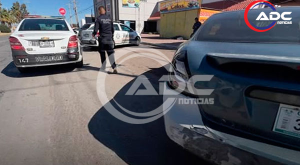 Cd. Delicias, Chih.- Un percance vial ocurrió sobre la avenida Fernando Baeza, metros después de cruzar la avenida Del Parque, donde participaron un camión de carga y un automóvil particular gris de la marca Pontiac.