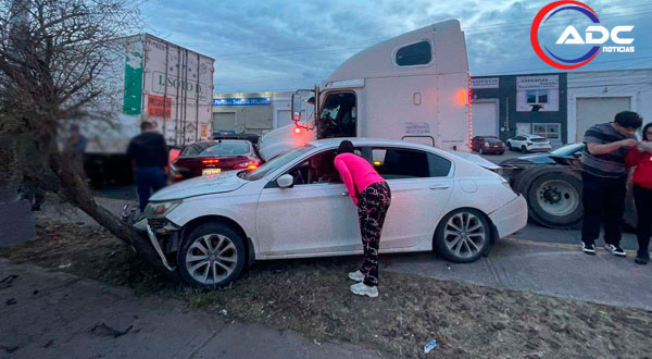 Chihuahua, Chih.- Un tráiler perteneciente a la línea Astorga que transitaba por la avenida Tecnológico se quedó sin frenos antes de llegar al cruce con Miguel de Cervantes, lo que ocasionó que chocara contra un Honda Accord y este, a su vez, se impactara contra otra unidad.