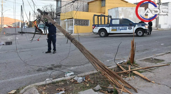Chihuahua, Chih.-Un tráiler derribó dos postes de una compañía telefónica y dejó sin servicio de internet a cientos de vecinos en la colonia Mármol 1, al sur de Chihuahua. El incidente ocurrió en el cruce de las calles Nueva Vizcaya y Misión Santa Bárbara, alrededor de las 04:00 horas de este viernes.