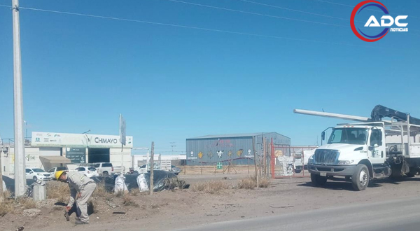 Cd. Delicias, Chih.- Gracias a la intervención de Protección Civil Municipal, se gestionó ante la Comisión Federal de Electricidadla reparación de un poste severamente dañado tras un accidente registrado durante la madrugada, en el sector donde se ubica el antiguo campo de aviación, en el municipio de Delicias.