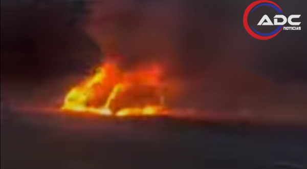 Cuauhtémoc, Chih.-Un vehículo compacto fue captado completamente en llamas sobre la carretera que conecta Cuauhtémoc con Chihuahua, a la altura del municipio de Santa Isabel. El hecho fue difundido por ciudadanos que circulaban por la zona y compartieron imágenes en redes sociales.