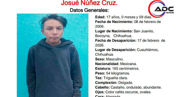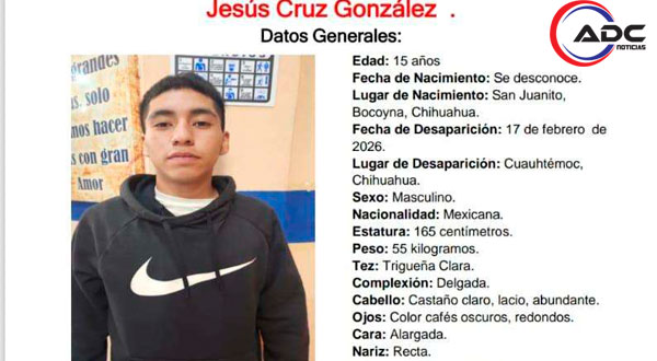 Cuauhtémoc, Chih.- Autoridades hicieron un llamado a la comunidad para colaborar en la búsqueda de tres adolescentes que fueron reportados como desaparecidos el pasado 17 de febrero en el municipio de Cuauhtémoc.