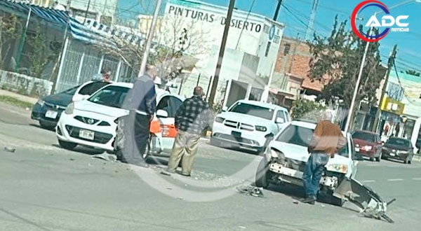 Cd. Delicias, Chih.- Un choque entre un Chevrolet Malibu y un Nissan March se registró en el cruce de la avenida Agricultura y calle Segunda, a la altura de Río San Pedro Sur, informó el oficial de Vialidad Pavel Martínez. El percance generó la movilización de corporaciones de auxilio y agentes de Tránsito.