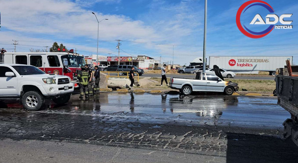 Chihuahua, Chih.-Un vehículo se incendió mientras circulaba sobre la avenida Tecnológico, en sentido de norte a sur, antes del cruce con Circuito Universitario. La unidad, una pickup Volkswagen Pointer color gris, presentó una falla mecánica momentos antes de que iniciara el fuego.