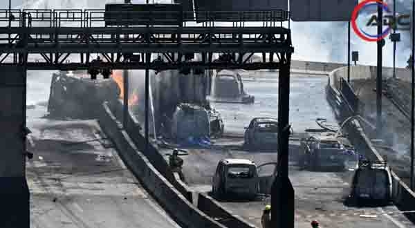 La onda explosiva alcanzó a vehículos que transitaban por una autopista aledaña. También llegó a empresas cercanas pero sin provocar mayor impacto que vehículos quemados.