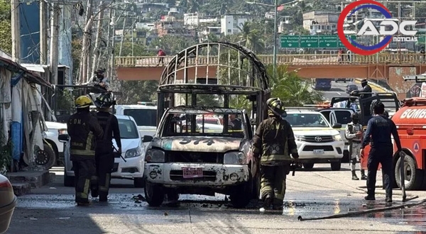 Acapulco, Gue.-Tras la caída de Nemesio Oseguera Cervantes, alias “El Mencho”, se registró una jornada de violencia en Acapulco, donde fueron incendiados un tráiler y al menos tres unidades del transporte urbano, además de un ataque armado contra la comandancia de la Policía Investigadora Ministerial.