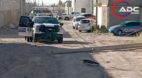 Uno de los postes cayó sobre una camioneta Kia Sorento que se encontraba estacionada frente a un domicilio, lo que generó afectaciones al vehículo. El incidente dejó sin suministro de energía eléctrica, internet y televisión por cable a varios hogares del sector.