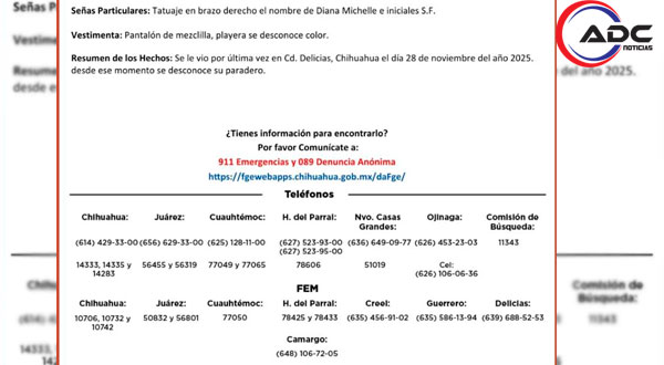 La ciudadanía puede acceder a más información y reportar cualquier dato relevante en el sitio oficial: https://fgewebapps.chihuahua.gob.mx/daFge/