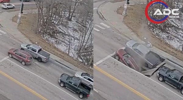 Nebraska, EUA.-Un socavón se abrió de manera repentina en una intersección de Omaha, Nebraska, y provocó que dos vehículos que se encontraban detenidos ante un semáforo cayeran al interior. El incidente ocurrió cuando el asfalto cedió de forma súbita bajo las unidades.