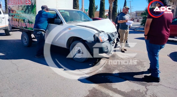 Cd. Delicias, Chih.- Esta tarde se registró un accidente vial en el cruce de la avenida Agricultura Oriente con la avenida Río Conchos, frente al teatro Lucía de Otranzo, que involucró a un vehículo KIA tipo Sorento y una camioneta Nissan NP300.