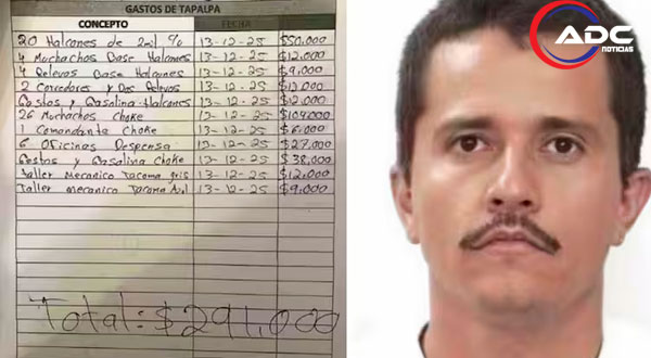 Los registros, con fecha del 13 de diciembre de 2025, muestran lo que pagaba el narcotráficante mensualmente y las actividades inícitas que realizaban las personas que trabajaban para él.