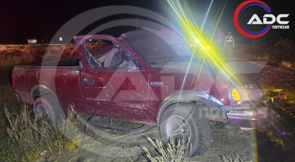 Meoqui, Chih.-Un aparatoso accidente tipo volcadura se registró la noche de este sábado sobre la carretera federal 45, a la altura de la comunidad de La Chávez, en el municipio de Meoqui, luego de que una camioneta saliera del camino y terminara con severos daños tras dar varias volteretas.
