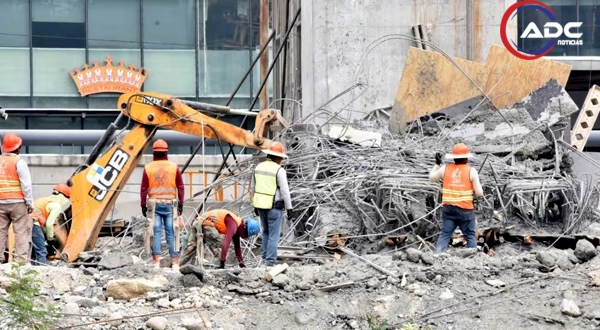 Al menos 5 obreros resultaron heridos tras caer desde varios metros; dos de ellos fueron trasladados a un hospital privado por ambulancias de la constructora.
