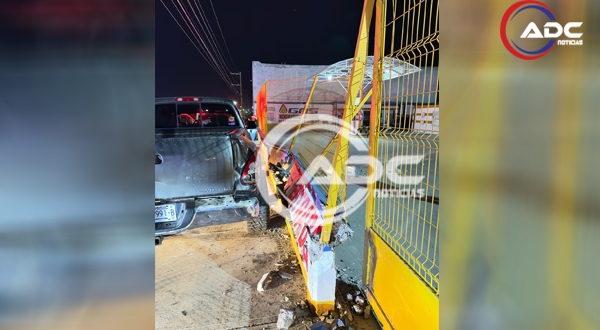 La camioneta terminó chocando contra una barda de block y una malla ciclónica, propiedad del establecimiento, resultando en daños materiales considerables tanto para la unidad como para la infraestructura del lugar.