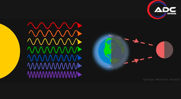 Esto ocurre porque la luz del Sol contiene todos los colores del espectro. La atmósfera terrestre dispersa principalmente los tonos azules (fenómeno conocido como dispersión de Rayleigh), mientras que las longitudes de onda más largas, como el rojo, logran atravesarla.