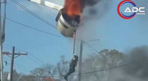 Estados Unidos.- Un video captado en Luisiana, en Estados Unidos, se viralizó en redes sociales al mostrar el momento en que un trabajador quedó atrapado en la canastilla en llamas de un camión mientras realizaba labores en altura.