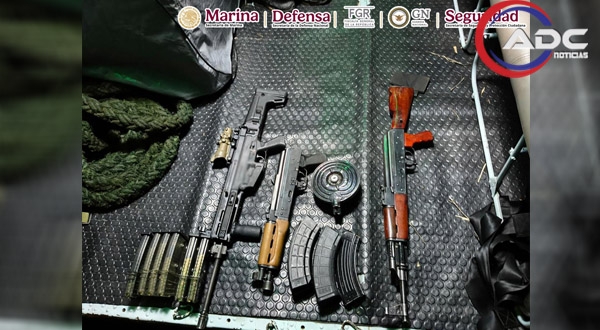 Durante el operativo, las fuerzas de seguridad localizaron un laboratorio clandestino para la elaboración de metanfetaminas y aseguraron tres armas largas, cargadores, vehículos, precursores químicos y equipo utilizado para la producción de droga.