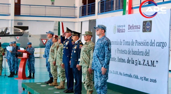 Saucillo, Chih.- Alcaldes de la región centro-sur del estado asistieron este jueves a las instalaciones militares de Santa Gertrudis para presenciar la ceremonia de toma de posesión y protesta de bandera del nuevo Comandante Interino de la 5/a Zona Aérea Militar, en un evento protocolario que reunió a autoridades civiles y mandos militares.