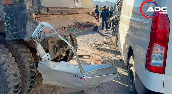 Chihuahua, Chih.- Un hombre de 35 años sufrió lesiones de consideración luego de verse involucrado en un aparatoso accidente vial, presuntamente ocasionado cuando un camión de carga le cerró el paso a una camioneta tipo Van Mazda perteneciente a la empresa FedEx.