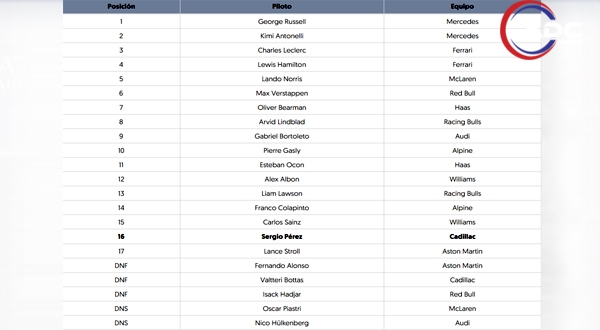 ¿Cómo le fue a ‘Checo’ Pérez? La primera carrera del año también marcó el debut de Cadillac en la Fórmula 1, con el mexicano Sergio ‘Checo’ Pérez finalizando en el puesto 16 y el finlandés Valtteri Bottas abandonando tras un incidente en pista.