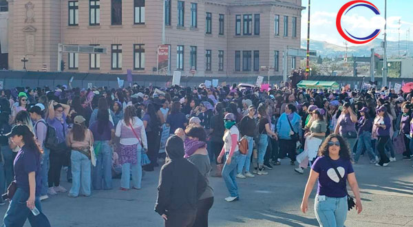 La movilización se realizó la tarde del 8 de marzo y reunió principalmente a mujeres que recorrieron diversas calles del centro de la ciudad, con el objetivo de visibilizar la violencia de género y demandar acciones concretas por parte de las autoridades.