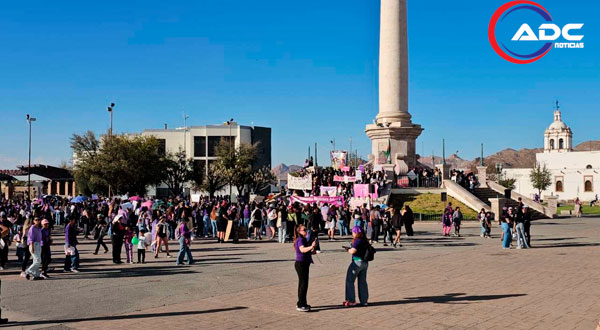 Chihuahua, Chih.- Con la consigna “Que tiemble el Estado” escrita con aerosol, comenzó la concentración de manifestantes en la Plaza del Ángel durante la jornada del 8 de marzo. Tras recorrer diversas avenidas, el contingente llegó al punto de reunión para concentrarse frente al Palacio de Gobierno.