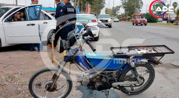 Cd. Delicias, Chih.- Un percance vial entre un automóvil y una motocicleta se registró la mañana de este lunes en el cruce de la avenida Fernando Baeza y Plutarco Elías Calles, lo que movilizó a cuerpos de emergencia y autoridades viales.