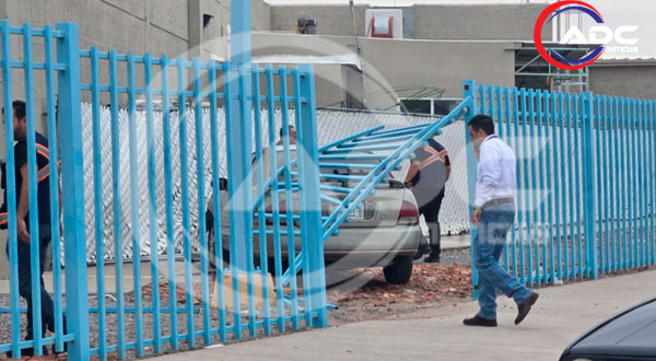 Al arribar, los agentes localizaron un automóvil Nissan Sentra color dorado, con placas del estado de Chihuahua, el cual terminó dentro de las instalaciones de la maquiladora tras derribar una sección del cerco.